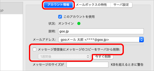・[メッセージ受信後にメッセージのコピーをサーバから削除]にチェックした場合