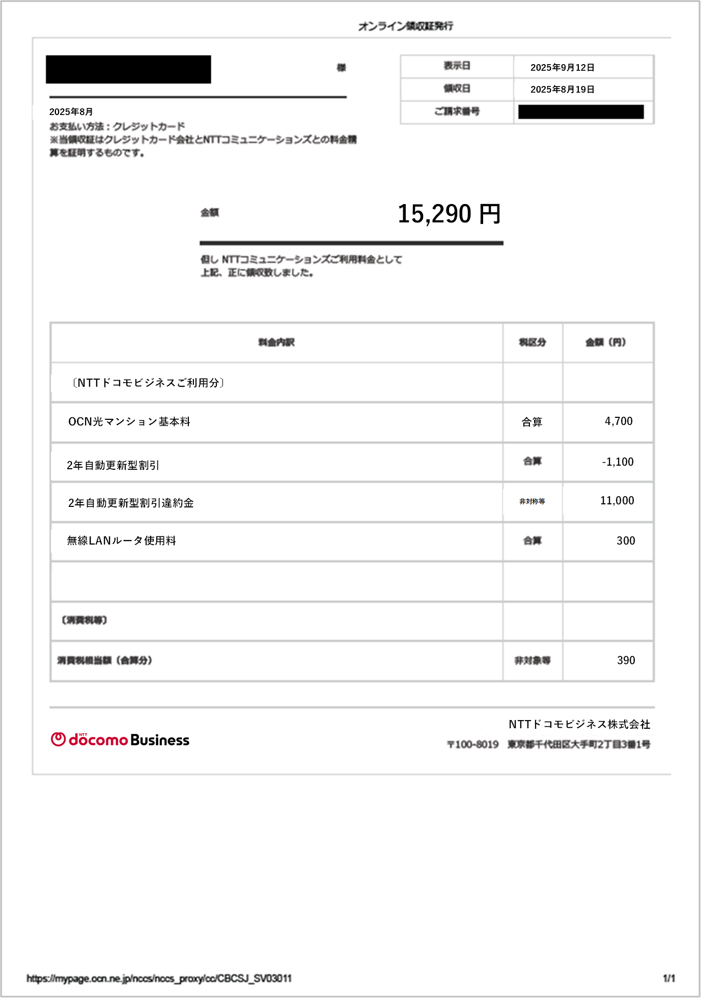 最終のご請求については、OCNマイページ内の「ご利用料金」ページ、または「オンライン領収証」からもご確認いただけます。