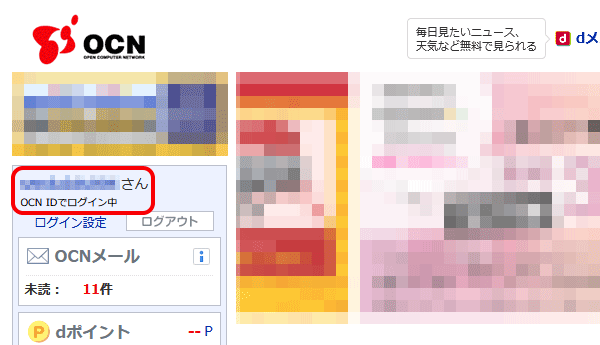 ※ ログイン後は[ゲストさん]の表示が、[~ さん OCN IDでログイン中]に変わります。